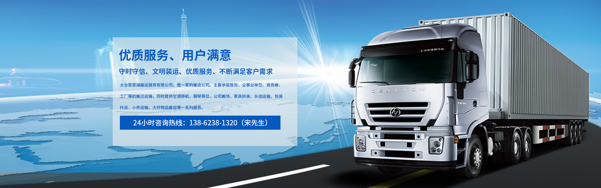 太仓家家福搬运服务有限公司,是一家的搬运公司。主要承接居民、企事业单位、商务楼、工厂等的搬迁运输,同时提供空调移机、钢琴移位、公司搬场、家具拆装、长途运输、包装托运、小件运输,大件物品搬运等一系列服务。 公司成立以来坚持"用户满意"的经营理念,信守让客户质量放心、服务称心、搬运省心、方便及时的搬场服务,本着以信誉赢得客户,求质量发展企业的准则。家家福搬家公司以"守时守信、文明装运、不断满足客户需求"为质量方针,并一贯遵循"全心全意为人民服务,搬家为民,信誉,用户至上,团结合作争创"的经营宗旨。所有员工岗前均受过培训确保合格上岗。